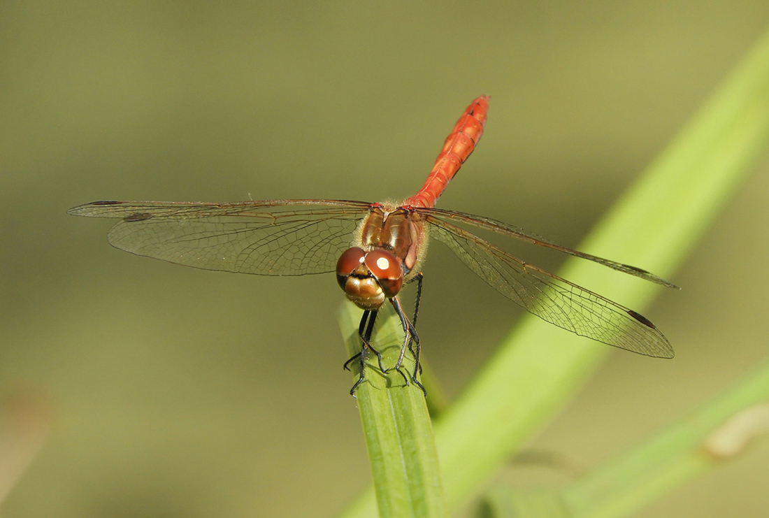 Ich hatte mich gerade positioniert, das setzte sich die Heidelibelle genau vor mir kurz auf den Grashalm und musterte mich.