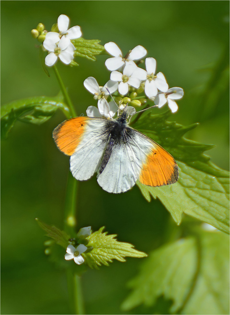 Auf Knoblauchsrauke und auf Wiesenschaumkraut setzen sich diese frühen Falter sehr gerne. Leider klappen sie nicht so oft die Flügel auf und man muß sie lange verfolgen bis sie sich mal setzen..
