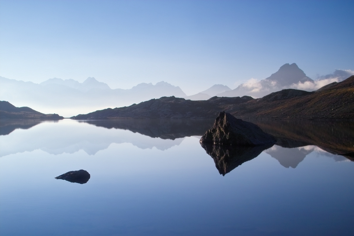 die Stimmung gefällt mir besonders durch die harmonische Farbgebung. Das Wasser ist fast ein Spiegel. Der Lunghin-See wirkt hier übrigens viel größer als er wirklich ist.
