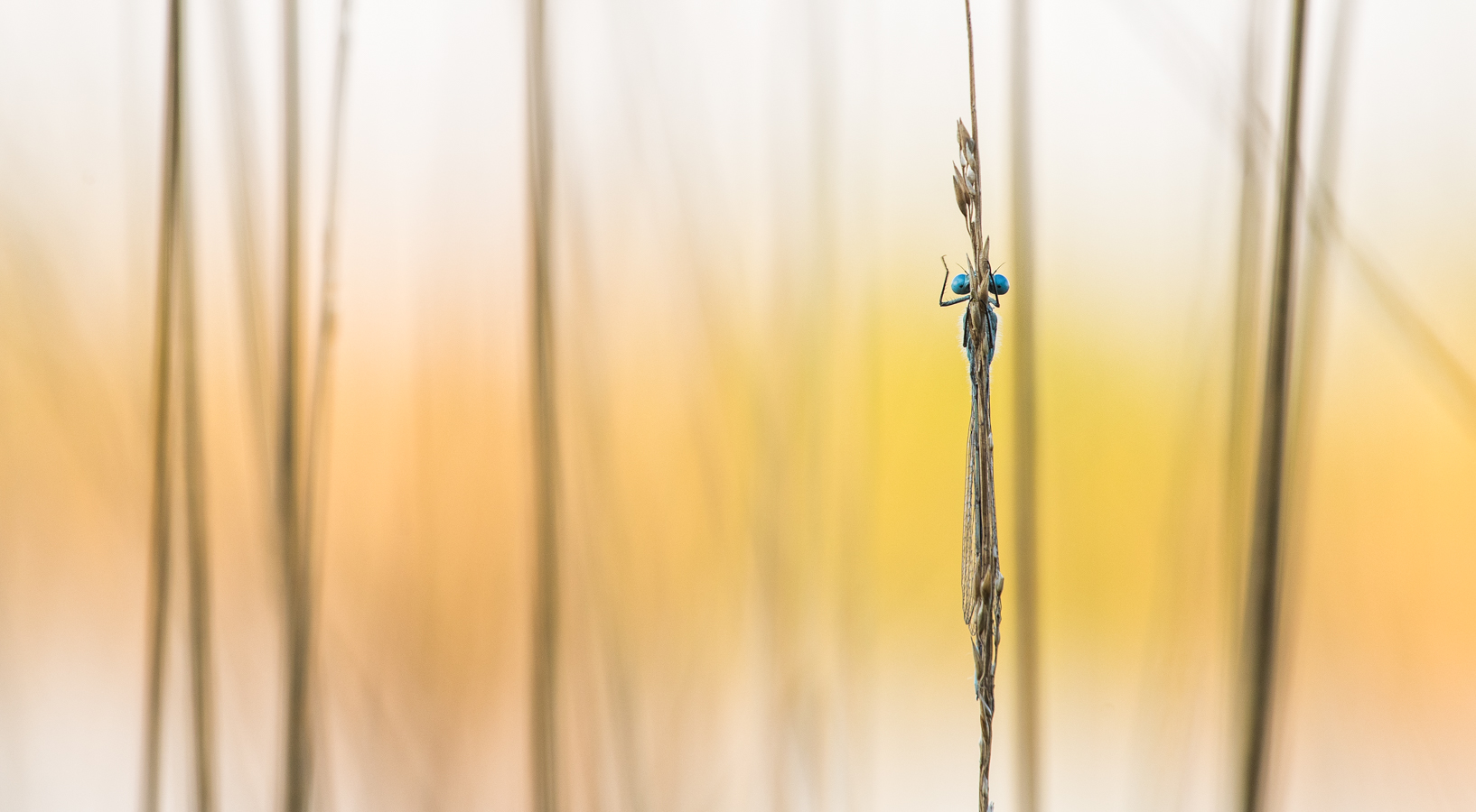im Prinzip fast so gut wie das erste. Ich vergleiche jetzt mal, weil sich´s einfach anbietet: Das erste wirkt wegen der einheitlichen Hintergrundfarbe auf mich abgeschlossener, dichter und die Halme scheinen mir dort besser ins Bild zu passen. Hier wirken sie auf mich, da sie sich vom helleren Hintergrund besser abheben, schon fast zu präsent. So im direkten Vergleich eben. Vielleicht ließe sich das ganze hier heller oder sogar Richtung High-Key ausarbeiten, könnte ich mir jedenfalls gut vorstellen. Würde ich ur das hier kennen, stände hier jetzt auch kein Gemecker, schätze ich mal. Die Pose der Libelle ist cool.